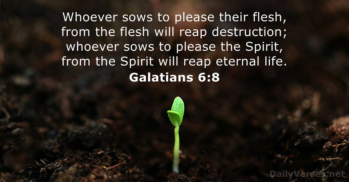 If you sow to your flesh, you will reap destruction from the flesh; But if you sow to the Spirit, you will reap eternal life from the Spirit.