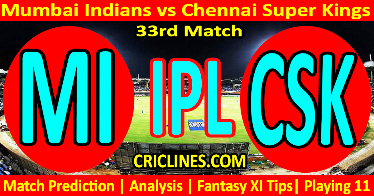 Who will win today Mumbai Indians vs Chennai Super Kings 33rd match IPL T20 2026 match-mi