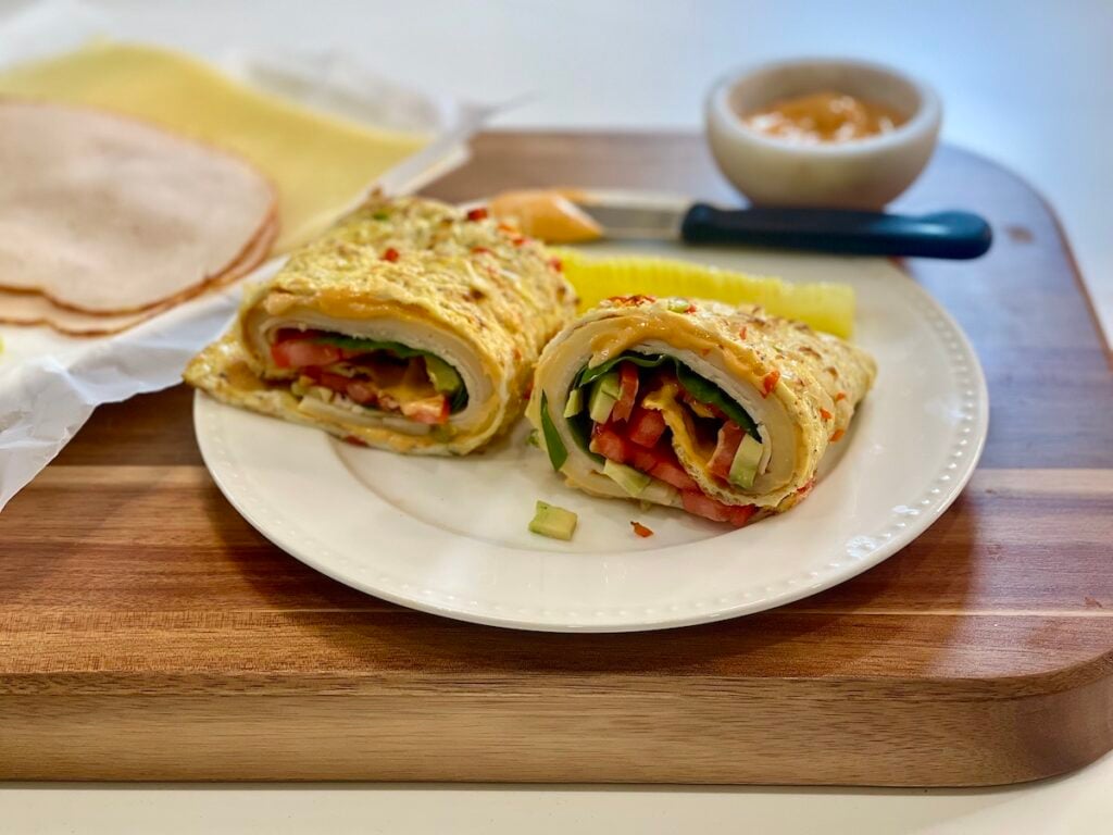 9. Low-Carb Omelette Wrap with Turkey, Swiss, and Sriracha Mayo (31 grams)